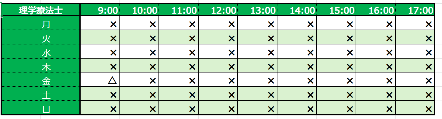 王子神谷訪問看護リハビリステーションより、今週の空き状況をご案内いたします。