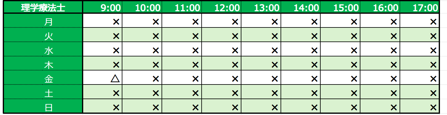 王子神谷訪問看護リハビリステーションより、今週の空き状況をご案内いたします。